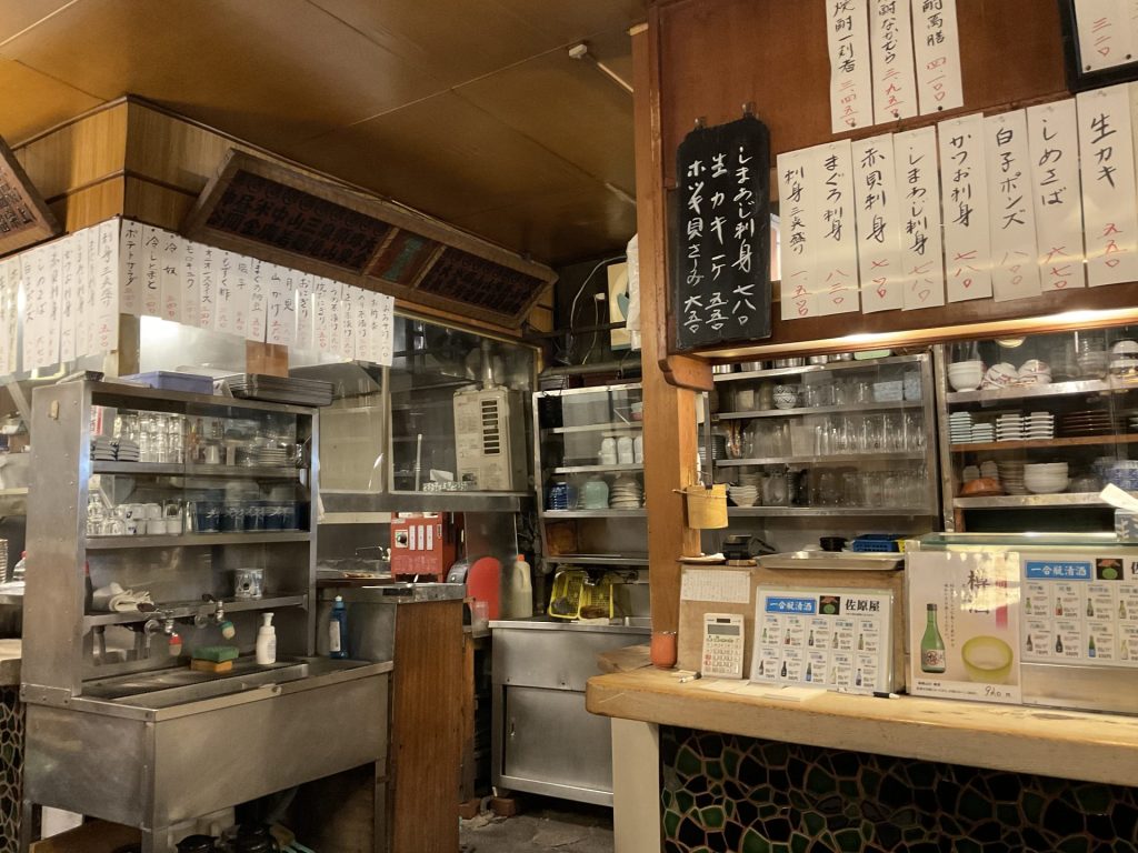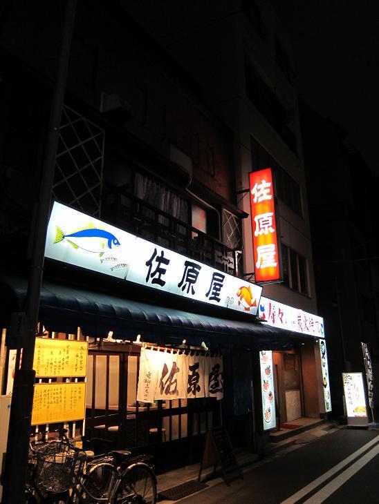 ですが、ひとつだけ番頭さんの好きなお店があるんです。奥方様に行こうと言うと嫌な顔されるのでなかなか言い出せないんですが、今回は久し振りに折れてもらいました。番頭さん曰く「奇跡の居酒屋」。問屋街の一本裏手の、夜は歩く人もまばらな中途半端な路地に佇み、太田和彦さんのような人以外誰が呑みに来るんだろうというもろ昭和な雰囲気のお店「佐原屋」