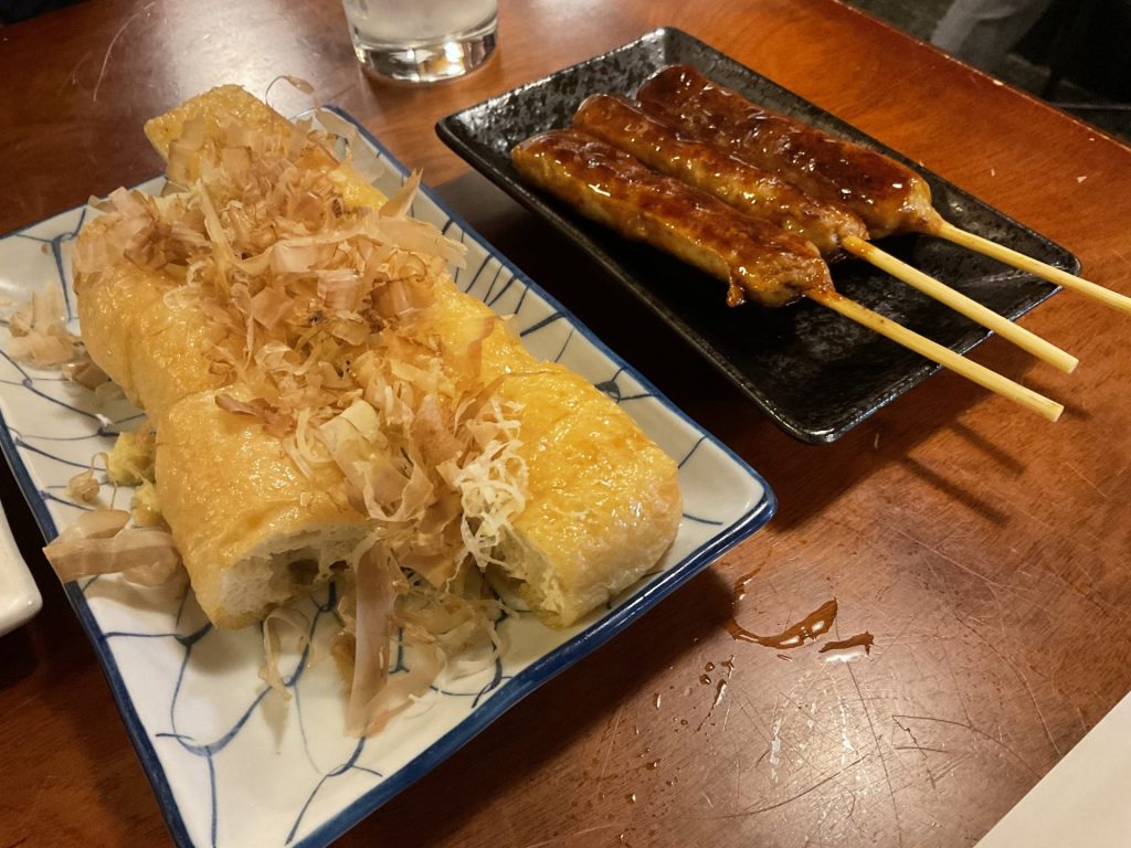 料理はすべて高レベルの逸品です。いつも食事を写真に撮ろうと思うのですが、必ずうっかり手をつけてしまい、とてもお見せできるようなものが撮れないのです。唯一まだお見せできる状態だった栃尾揚げとつくね焼きだけアップしました(笑)