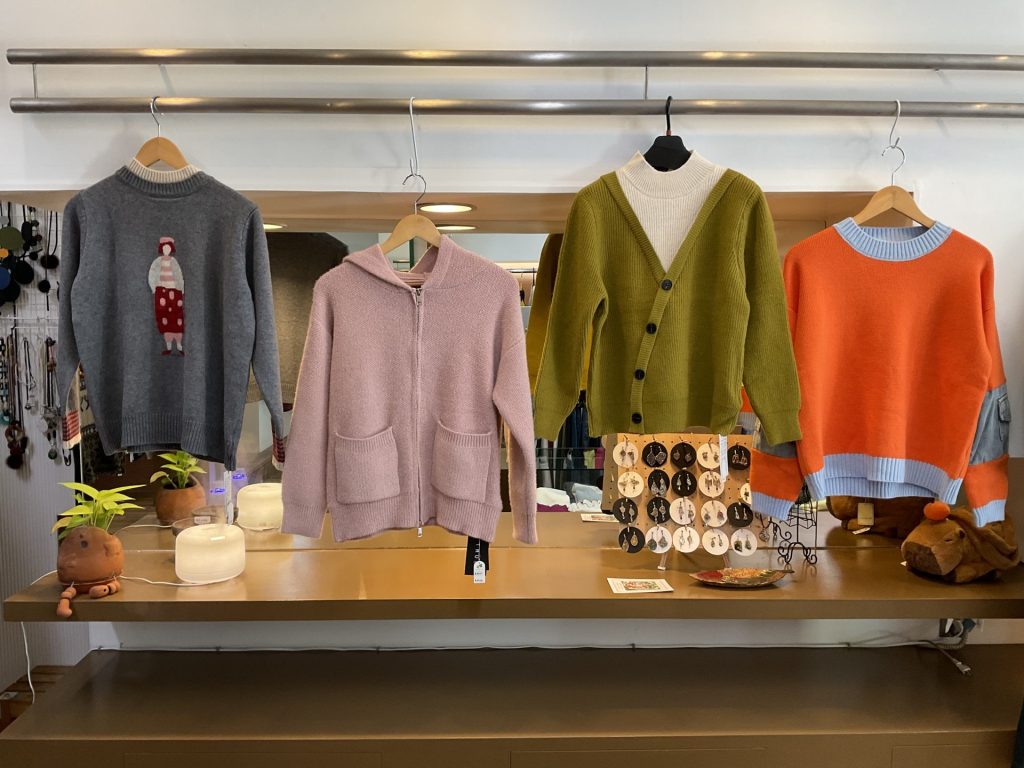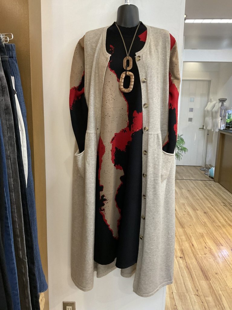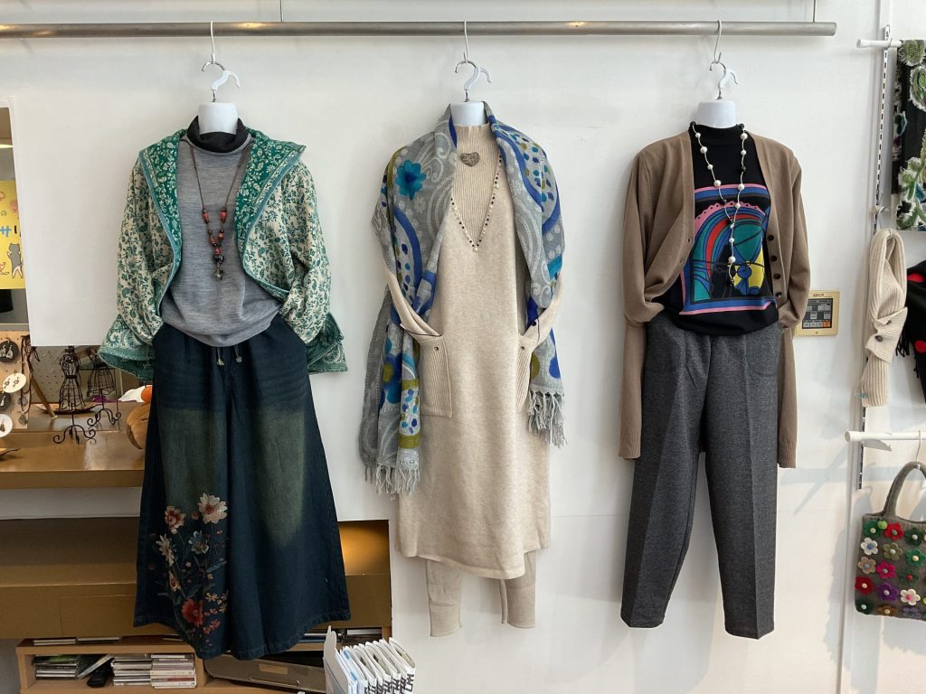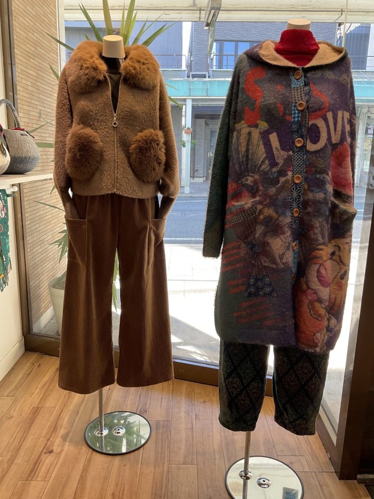 問屋街のショウウィンドウは真冬色🩵🩷と期待していたのですが、やはりそこまでではなく、コート類よりはやや厚めのニット物がどこでも大勢を占めている感じでした。トレンドはカジュアルに集中していますね。かりんこのお店がそういう傾向なのでどうしてもそちらに目が行くのですが、それにしてももう少しエレガント系があって欲しかったかな、とは思います