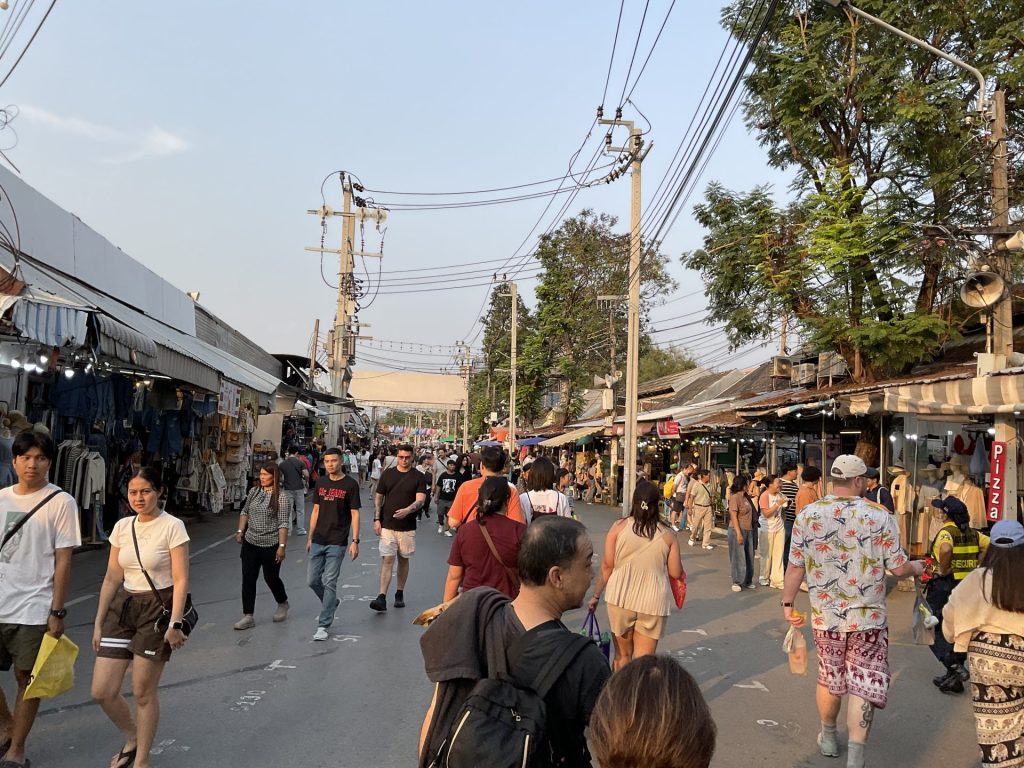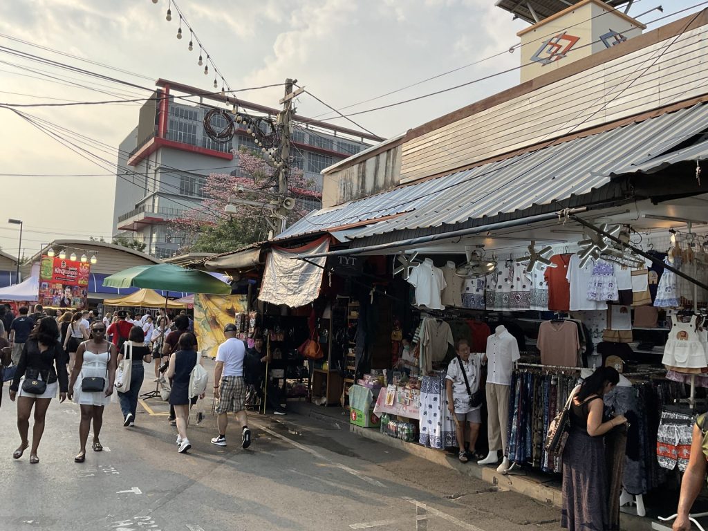 約6時間半のフライト(LCC ではけっこうキツい😵💫)。時差は2時間で日本時間17時が現地では15時の到着。日の出日の入りは日本とさして変わらず18時過ぎると暗くなります。招いてくれたメーカーさんのガイドで土日だけのウィークエンドマーケットに。暑さもやや収まって緩やかな風が吹く、黄昏が始まるときのような空気感が心地よい中、早速奥方様フルスロットル笑。