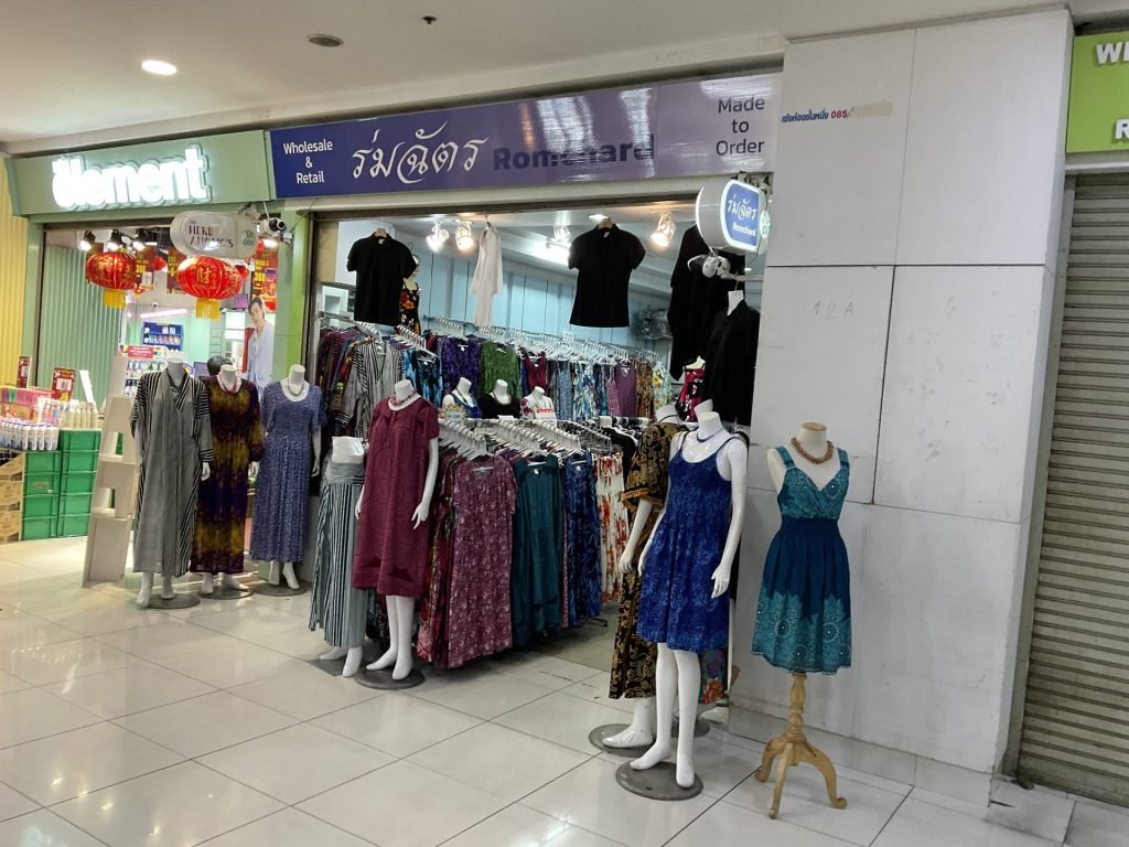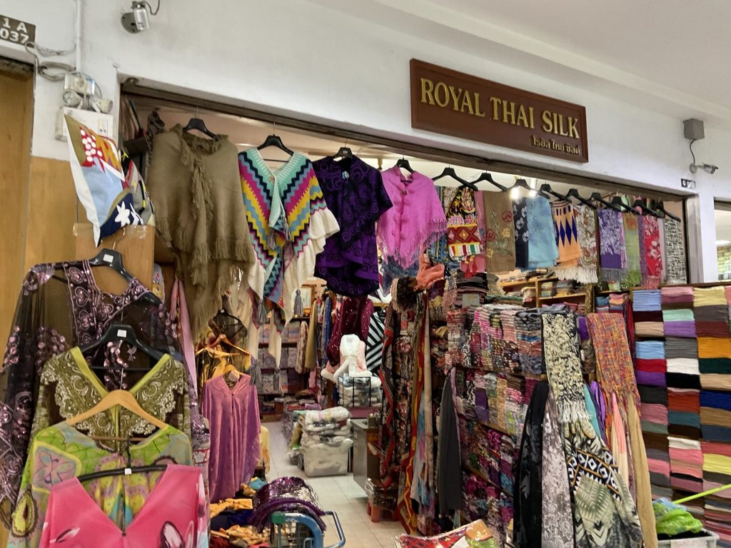 1日目も2日目もショッピング(仕入れのことですよ)尽くし。アユタヤにも行かず象に乗ることも眼中になく3日目はそこから40分ほど行ったチャイナワールドというショッピングセンターへ。ここはインドの生地などを扱っている穴場スポット。ただ最寄駅からそこに至るまでのストリートが拳銃やライフルなどを扱っているお店ばかりというなんとも物騒な街でした😱それでも日本で買ったらとんでもない値段の生地がとても安く見つかり、奥方様もホクホクの笑顔で仕入れができました。
