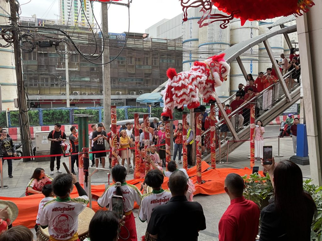 この日(17日)は中国の春節が始まる日で、タイに住む中華系の人たちが朝から大騒ぎ。銅鑼の音もけたたましく、異国に住む華僑たちのエネルギーが街のそこかしこで爆発していました。